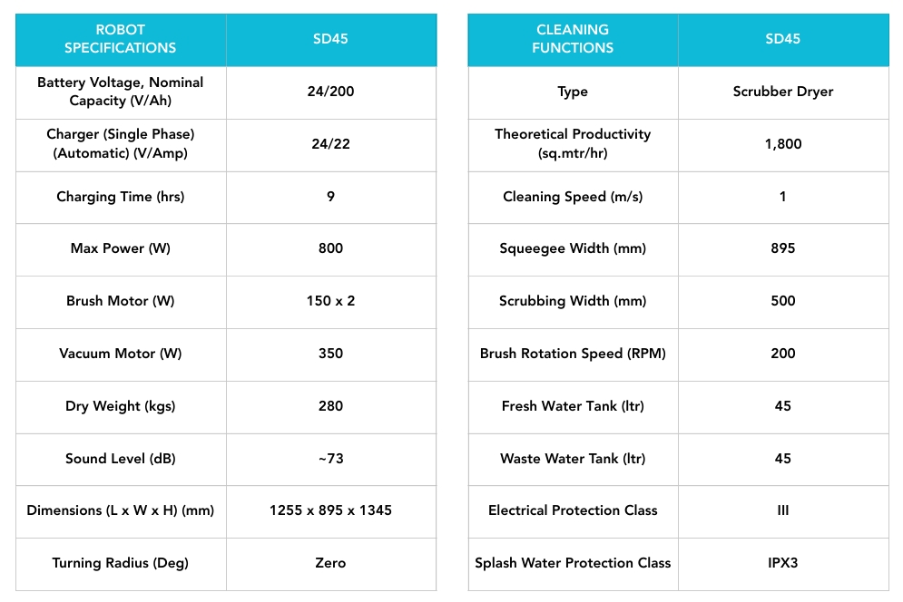Peppermint’s best-in-class, fully autonomous robotic floor scrubber-dryer — the SD45 — is engineered to deliver powerful, efficient, and intelligent cleaning across both commercial and industrial environments. Designed for maximum performance and minimal intervention, it effortlessly tackles large floor spaces with precision and consistency. Ideal for sectors such as Manufacturing, Pharmaceuticals, Healthcare, Airports, Malls, Hospitality, and Education, the SD45 empowers housekeeping teams to maintain exceptional standards of cleanliness and hygiene every day.